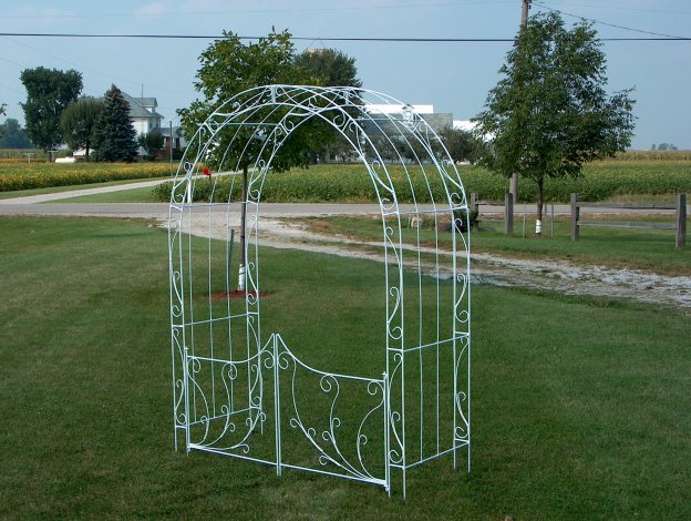 Elegant and durable, our gated arbor will last a lifetime. Draw pleasing interest to your garden by placing as an entryway, or enhance a sidewalk or pathway by using as a cover. Perfect fora free-standing centerpiece, or as a wedding accent. Available with or without gates. 80" H x 60" W x 24" D Item#1012