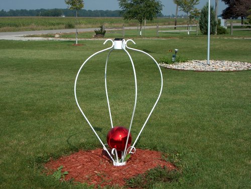 Reflect your garden's beauty and surroundings day or night in a panoramic view with our lights 6" gazing ball. Designed to accent smaller garden areas, it can also be placed on your deck or patio, with our flat base design. This model includes a solar top light. 30" H x 22" W. Item# 3611/3612